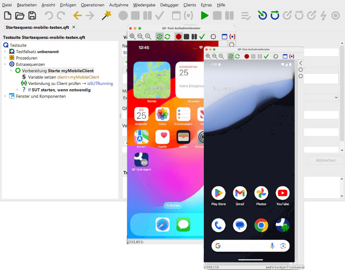 Testen Sie Ihre native mobile App auf Emulatoren, Simulatoren oder echten Android- und iOS-Geräten automatisiert mit QF-Test.
