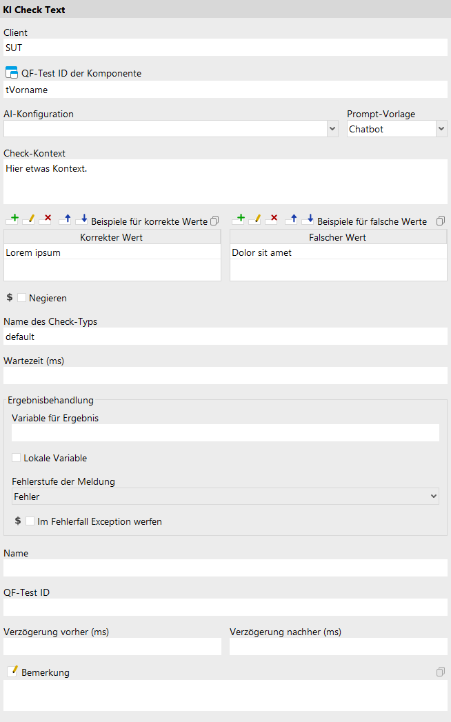 Dieser wird dann zusammen mit den anderen Informationen in das unter Prompt-Vorlage gewählten Template eingefügt und an das in AI-Konfiguration definierte LLM gesendet. Die Antwort des LLM ergibt den Erfolgstatus des Checks.