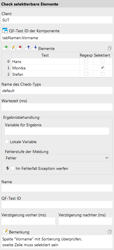 Ein Check kann mit Hilfe seiner Wartezeit auch dazu eingesetzt werden, im SUT darauf zu warten, dass eine Komponente einen bestimmten Zustand annimmt, also z.B. ein MenuItem aktiviert oder eine CheckBox selektiert wird.