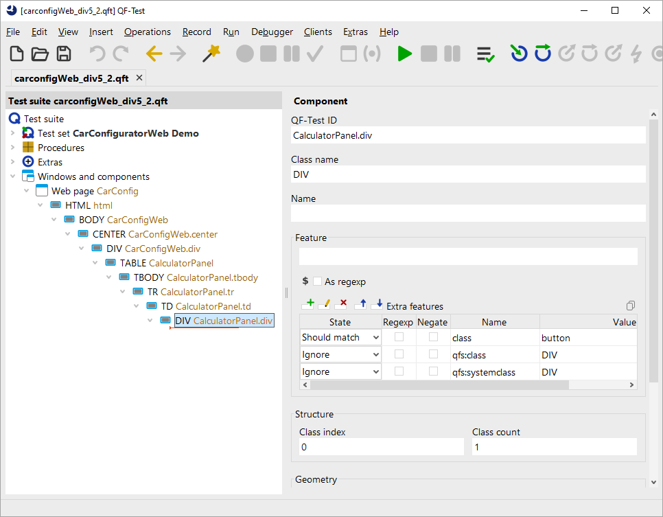 class information for QF-Test. Knowing this, we can add Button: button