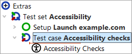 The generated test case includes an Accessibility Checks node, which, when executed, runs the specified