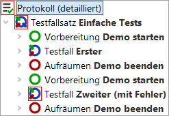 wie QF-Test den Test abgearbeitet hat.