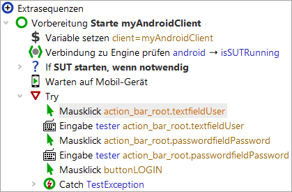 Um die Komplexität zunächst gering zu halten, fügen wir die Aktionen innerhalb eines Try-Knotens ein.