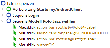 - Aktion Ändern Sie den Sequenznamen bitte ab zu "Modell Rolo Jazz wählen"