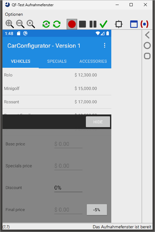 Beenden Sie die Aufnahme, indem Sie zurück zum QF-Test Fenster wechseln und