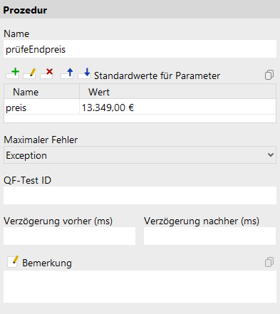 In obigem Beispiel wird QF-Test in der Namensspalte für die Standardwerte der