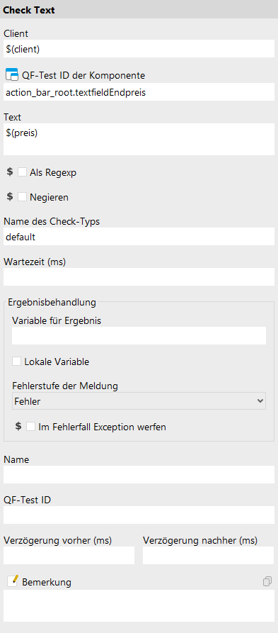 Variablennamen nicht in $() setzen, würde QF-Test den Preis mit
