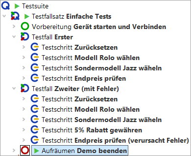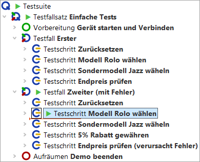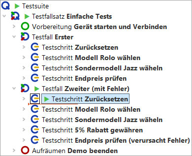 Hinweis Noch eine Bemerkung zu "Knoten überspringen" und "Aus Knoten herausspringen": Benutzen Sie diese mit Vorsicht! Aus einer Sequenz herauszuspringen, bevor diese zu Ende gelaufen ist, kann dazu führen, dass Ihr SUT in einem Status belassen wird, mit dem andere Sequenzen oder Tests in der Suite nicht aufsetzen können.