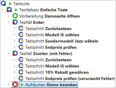 Hinweis Noch eine Bemerkung zu "Knoten überspringen" und "Aus Knoten herausspringen": Benutzen Sie diese mit Vorsicht! Aus einer Sequenz herauszuspringen, bevor diese zu Ende gelaufen ist, kann dazu führen, dass Ihr SUT in einem Status belassen wird, mit dem andere Sequenzen oder Tests in der Suite nicht aufsetzen können.
