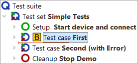 - Action Select the Test suite node and start the test run via the key Enter.