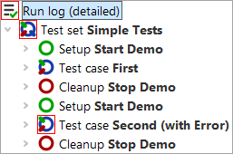 This shows the special behavior of Setup / Cleanup nodes in a test set: They are executed before and after each test case to help achieving a proper starting state for each test case.