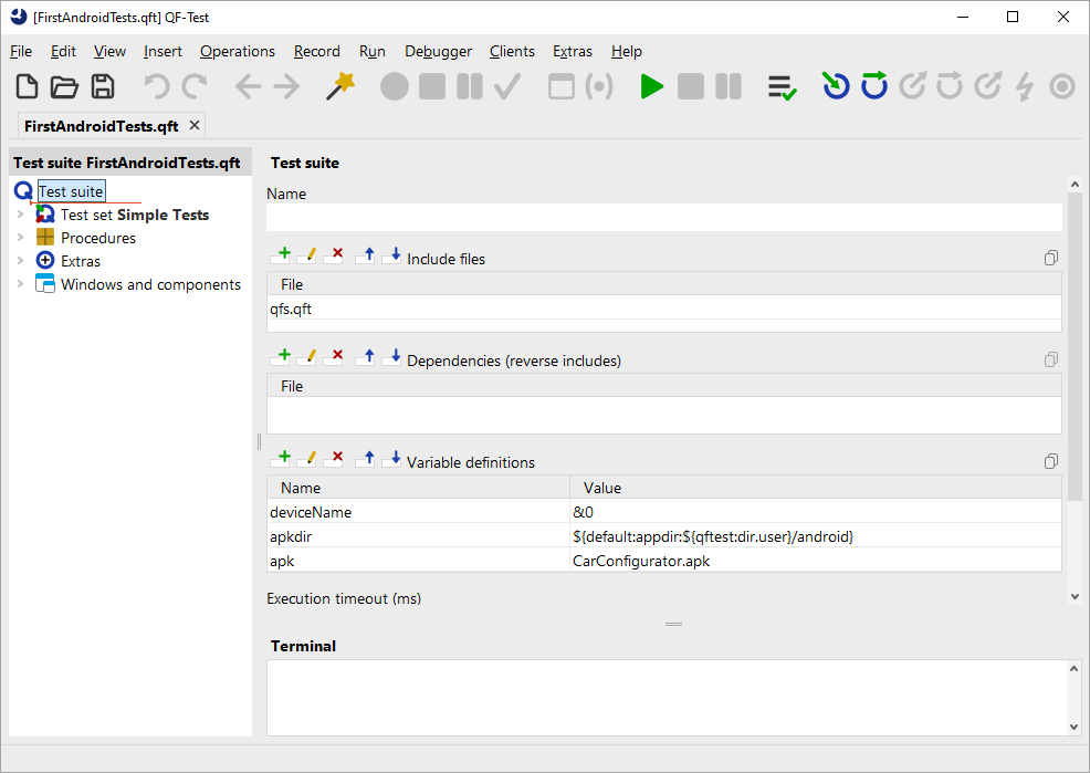 QF-Test will then load the indicated test suite which should look as follows: