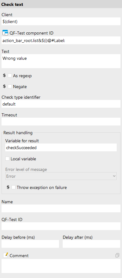 idin the variable definitions table to the QF-Test component ID of the list, i.e.action_bar_root.list. - Click the OK button.