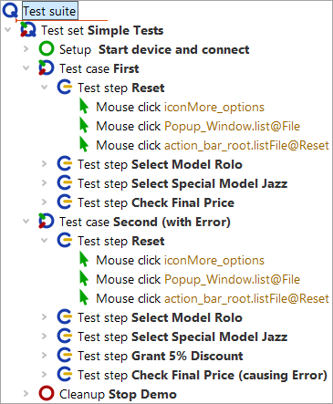 In this section we will further develop the test suite FirstAndroidTests.qft, which you already know from chapter 19.