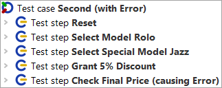 The second test case will show us what will happen when an error occurs during test execution.