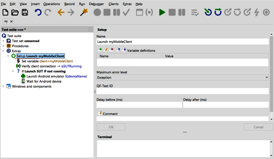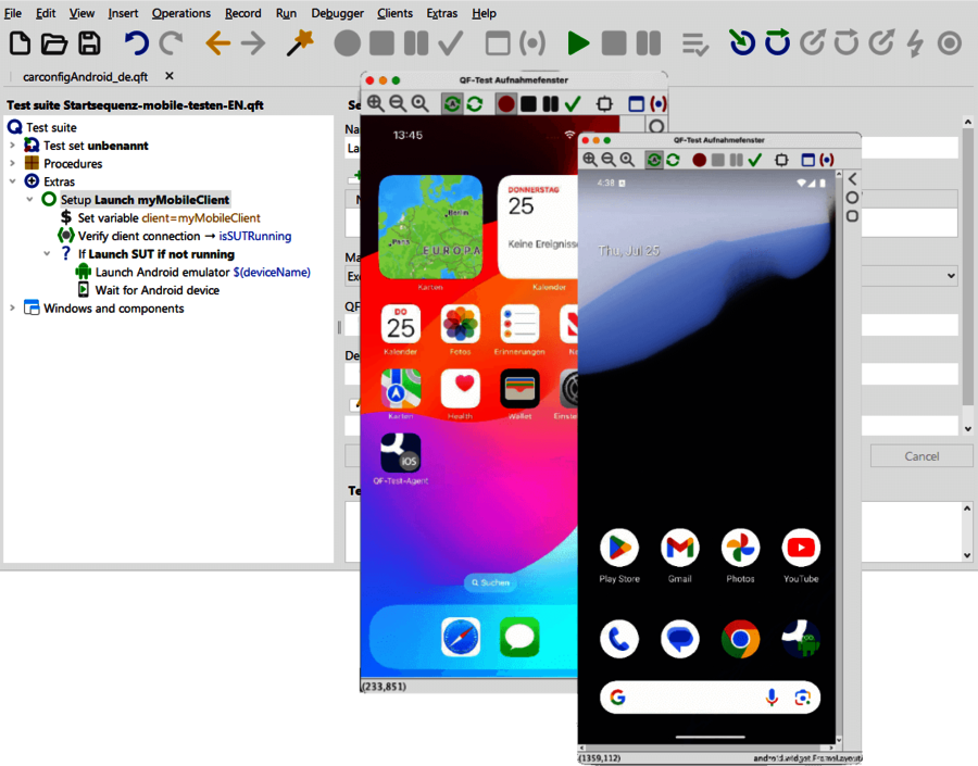 Test your native mobile app on emulators, simulators or real Android and iOS devices with QF-Test.