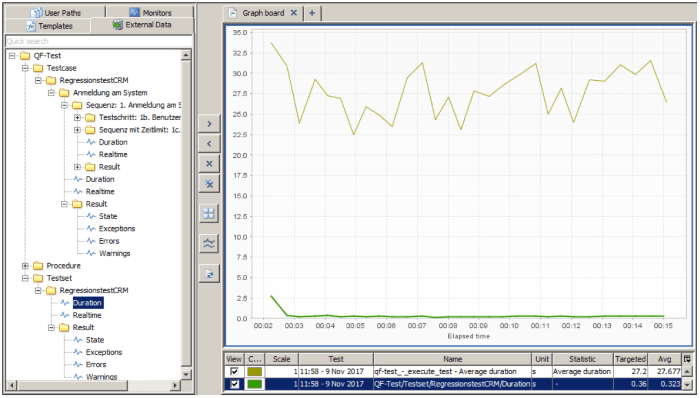 L’avantage de cette fonctionnalité est que les scripts existants de QF-Test peuvent être intégrés facilement dans un test de charge et que le test de charge avec la métrique de l’expérience de l’utilisateur final contient de nouvelles possibilités d’évaluation.