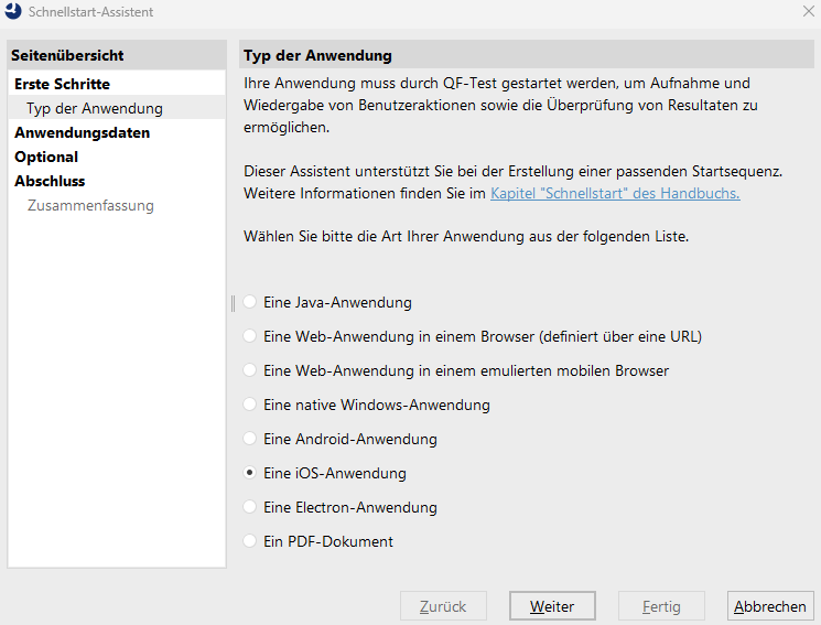 Das initiale Setup im mobilen App Testing ist mit QF-Test besonders komfortabel: Der Schnellstart-Assistent führt Sie Schritt für Schritt durch die Einrichtung aller nötigen Komponenten – für Android und iOS gleichermaßen. So gelingt der Einstieg auch ohne tiefgreifendes technisches Wissen, und die Testautomatisierung kann sofort starten.