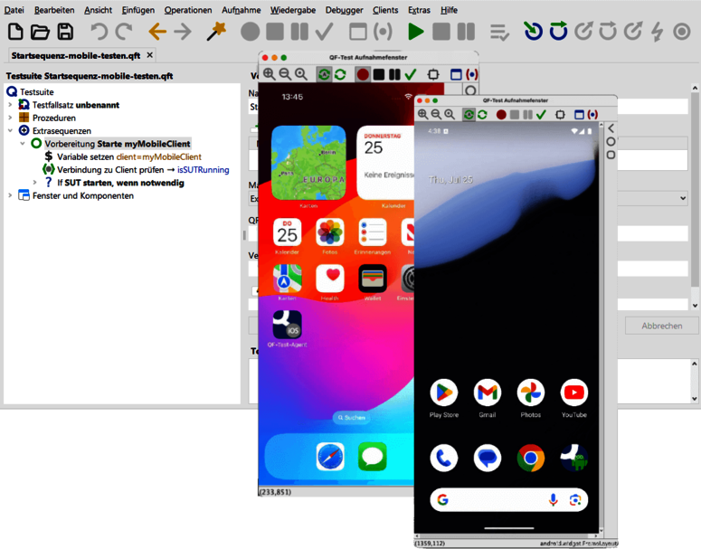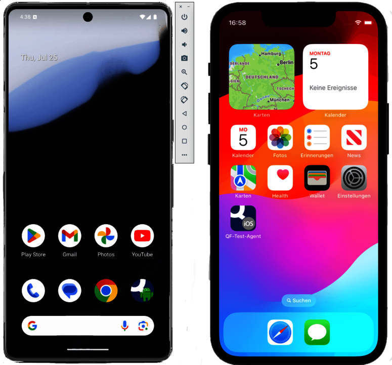 Testen Sie Ihre native mobile App auf Emulatoren, Simulatoren oder echten Android- und iOS-Geräten automatisiert mit QF-Test.